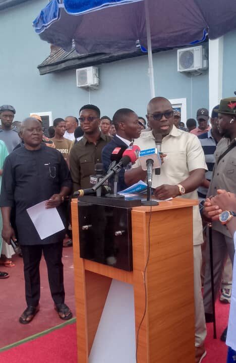 1 Comrade Adogbeji introducing his team players to the National President of SJCOOSA world wide. Old students of St Joseph’s College Ozoro defeat in-school-students 2-0 in a novelty match 2 Olorogun Senator Emmanuel Edesiri Aguariavwodo representing Gov Sheriff Oborevwori at the occasion Oborevwori challenges politicians on honest service to the people 3 Prof Oborevwori reiterates support for Literary Excellence at Lagos Book Presentation 4 TmMrs Tobore Oborevwori cutting the tape to inaugurate the cottage hospital Oborevwori’s wife inaugurates Cottage Hospital In Ughelli 5 Fetching water at the Ekpe EbileOgu River,  children also have fun there EZIAWA: Land where water is Gold (1)