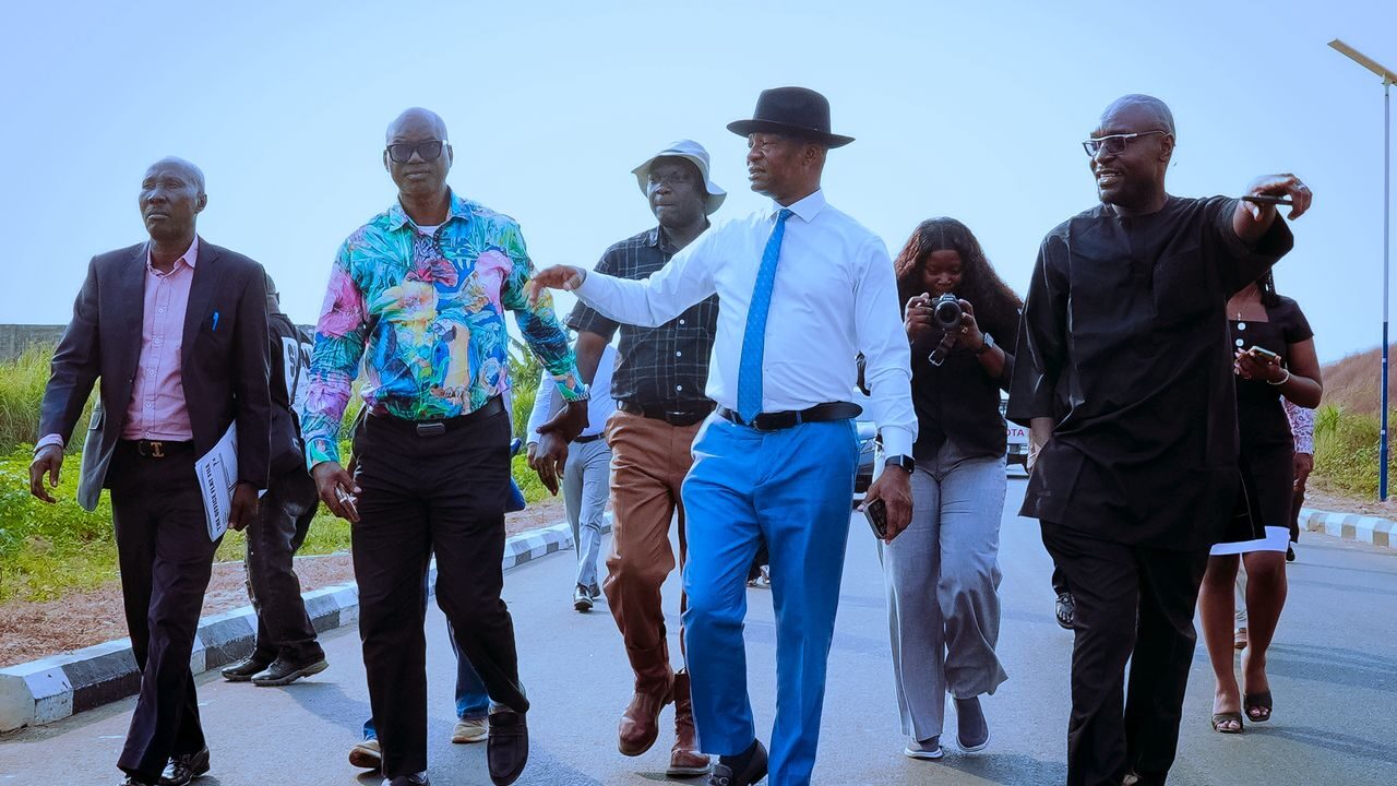 Hon Charles Aniagwu in a chat with his team members during the inspection tour Sponsored Delta State...