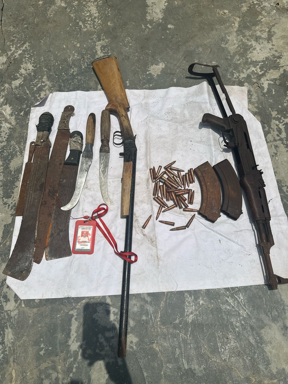 Earlier, on Saturday, March 15, the youth leader of Ekpan community, Victor Edavwe ‘m’, was arrested for illegal possession of an AK-47 assault rifle at Shrine Street, Ekpan and after interrogation, led Operatives to the house of one Efe aka ‘Eteyomo’ where one AK-47 assault rifle, one single barrel gun, 3 cutlasses, 2 daggers and 44 rounds of 7.62mm ammunition wrapped in a black sack and concealed on the roof of the sitting room were recovered.