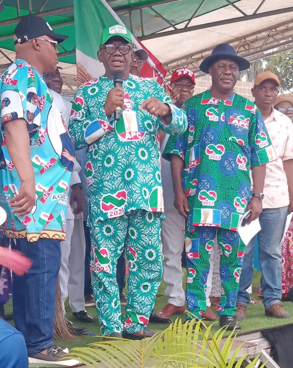 At Ogwashi-Uku, the deputy coordinator of the APC campaigns in Aniocha South, Pastor Polycarp Kachikwu, said the people of Ogwashi-Uku are going to vote out the PDP because they are distressed, demeaned, neglected and punished by Okowa for nothing, and “so we don’t want to hear Ego-aria again.”