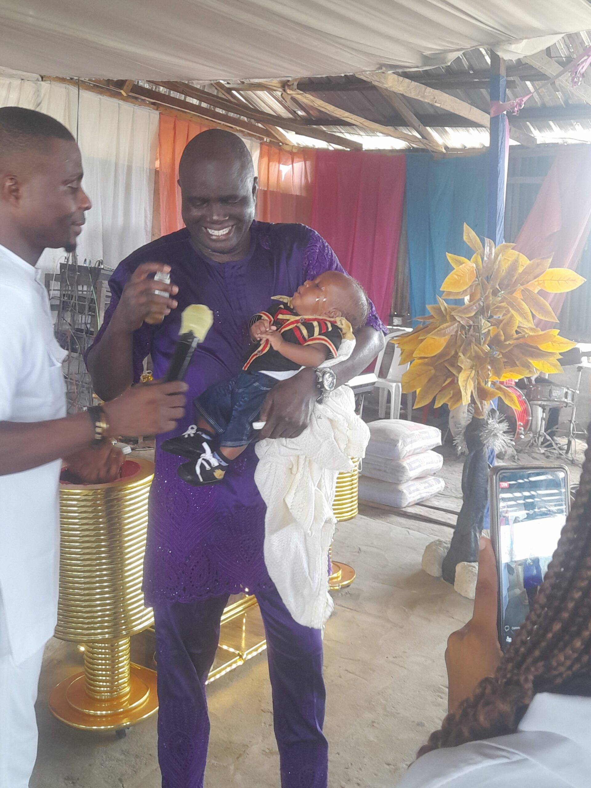 Prophet Alex dedicating a child during the service