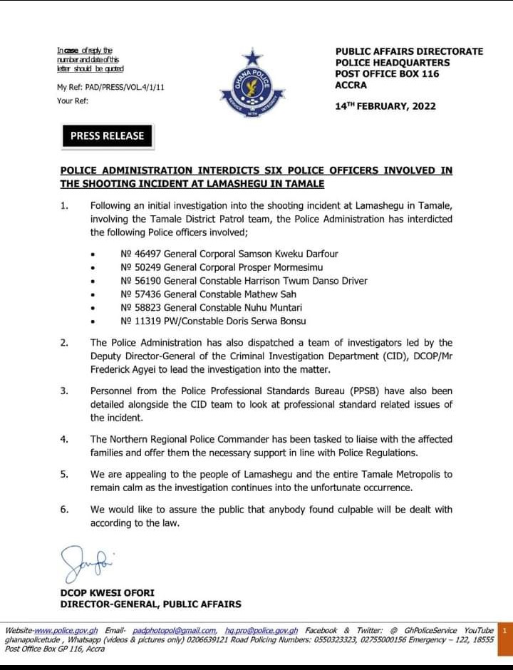 “We are appealing to the people of Lamashegu and the entire Tamale Metropolis to remain calm as the investigation continues into the unfortunate occurrence.”