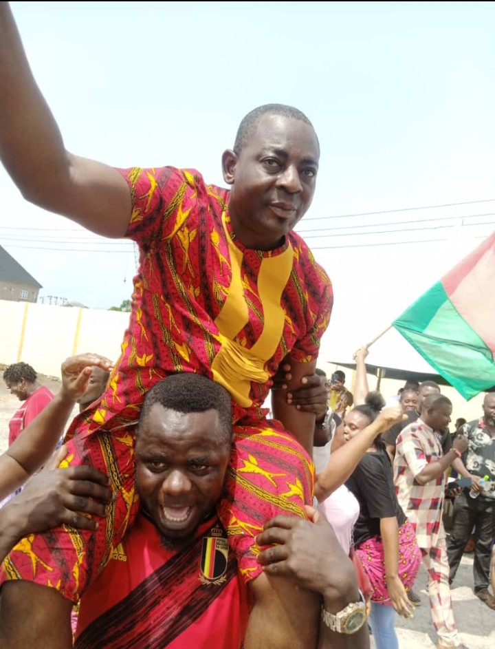 Mr Stanley Odogwu newly elected PG of Ijaws in Ughelli being carried shoulder high after winning the election.