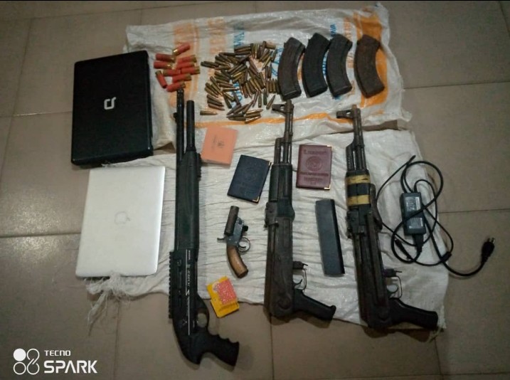 “They also led the operatives to their armoury where two AK47 rifles, one pump action gun, one locally made pistol, four magazines, seventy six rounds of live ammunition and thirty eight rounds of live cartridges were recovered.”