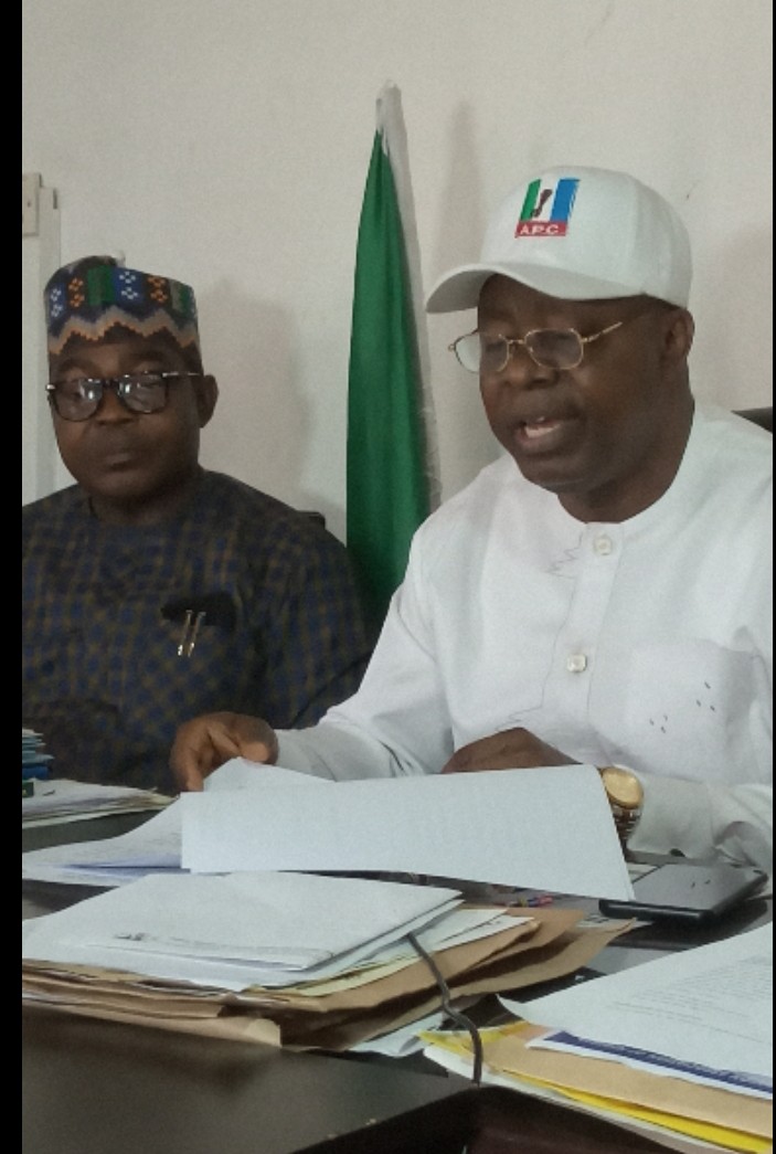 R), State Chairman, APC, Col. David Imuse retd flanked on the (L), State Publicity Secretary, Peter Enoserogbe Uwadiae Igbinigie Esq.