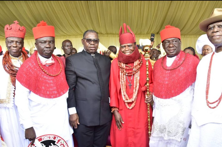 Deputy Gov, Onyema presenting the Staff of Office to the new Owhorode of Olommu