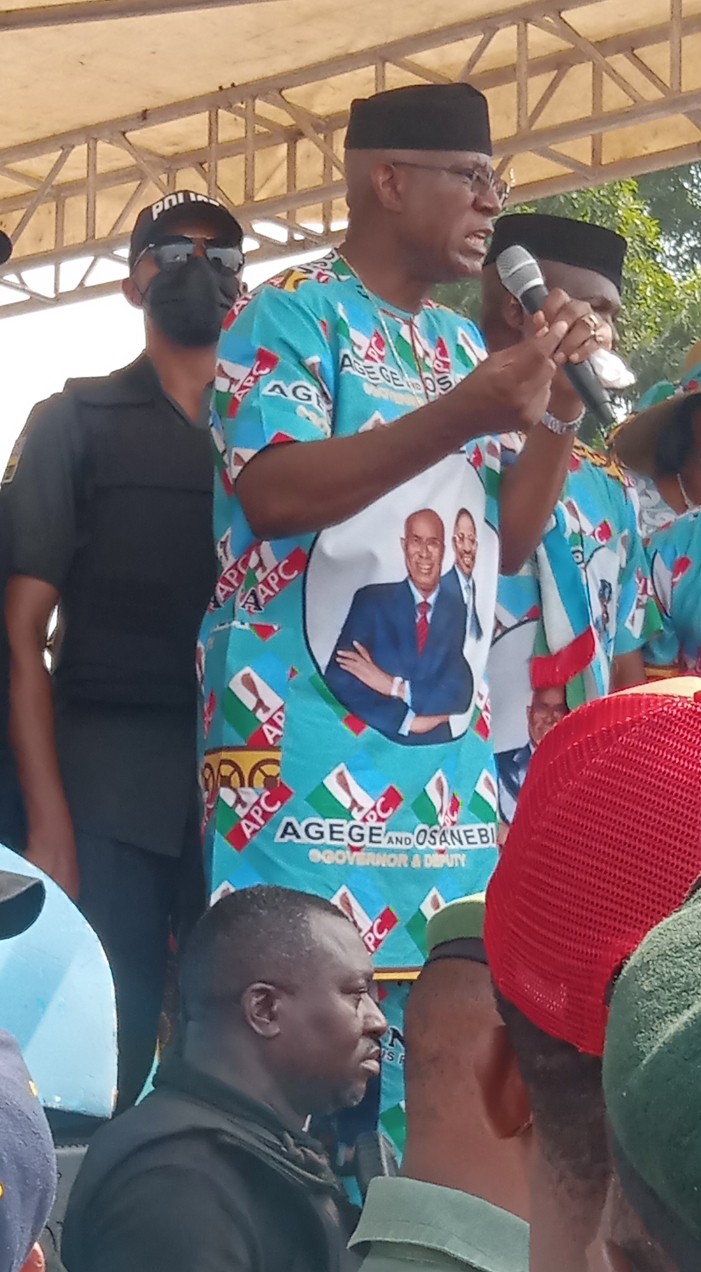 Omo-Agege addressing mammoth crowd of party faithful and supporters at Otor-Udu