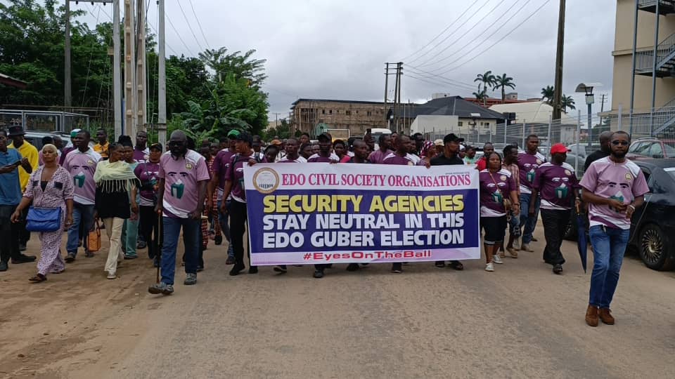 On Friday, 13 September, 2024, the Omobude led group were on the major streets of Benin, calling to question the role being played by the police and INEC in the run up to the election.