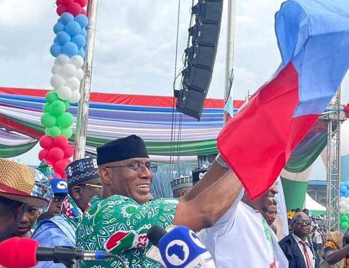 Senator Ovie Omo-Agege flying the APC flag as governorship candidate