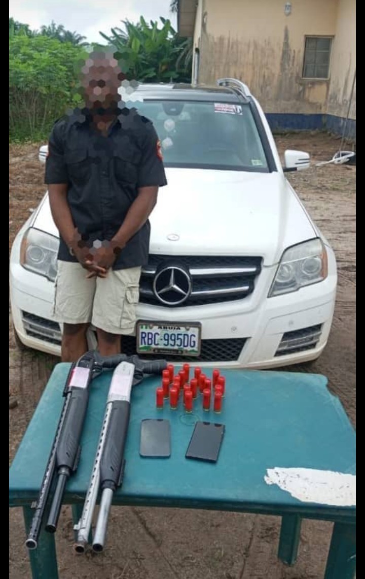 Day before yesterday, Wednesday, August 9, the suspect led Operatives to the residences of the accused, Onyeka and Paul who unfortunately were not at home but a search of the home premises revealed two English pump action guns, 20 live cartridges, and one GLK Benz SUV with registration no. RBC-995-DG which were recovered by the police.