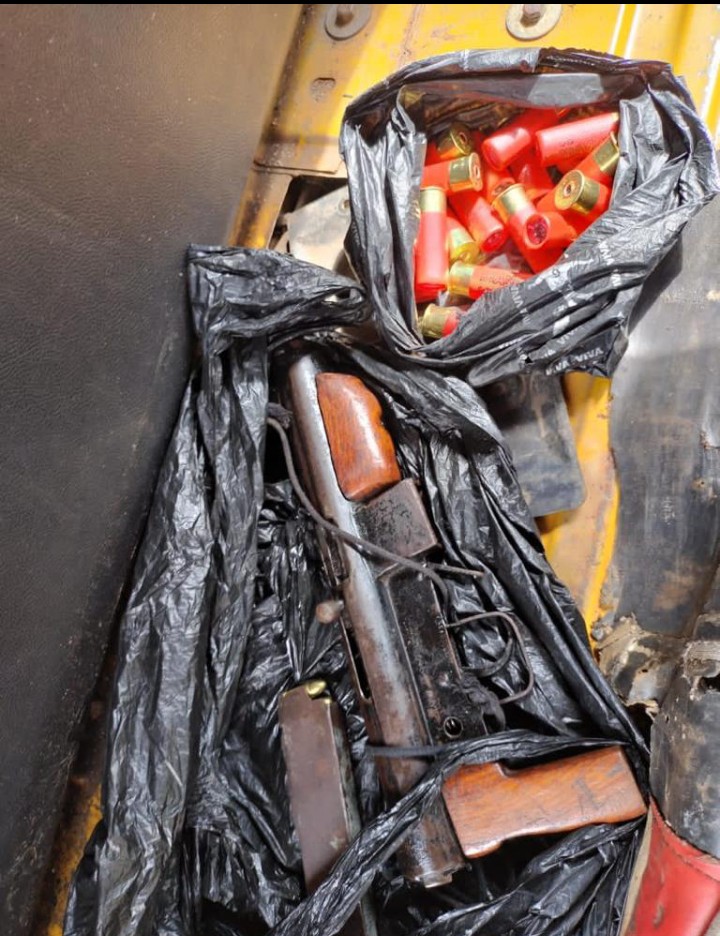 Upon a thorough search of the tricycle, a fabricated AK 47 rifle, twelve (12) rounds of 9mm live ammunition and twenty-three (23) live cartridges all concealed in black polythene bag and hidden beneath the rear passenger’s seat were recovered.