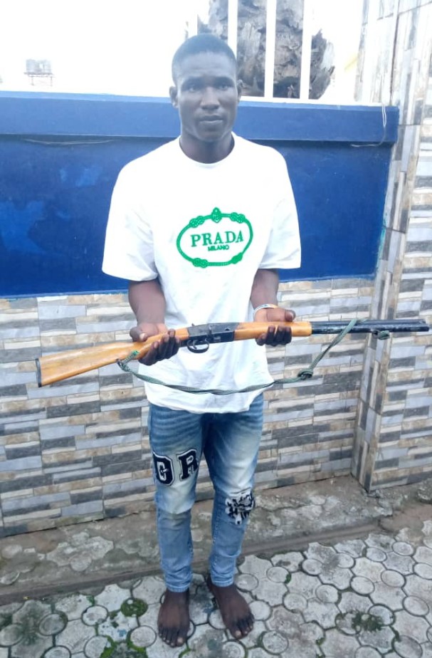 “During the search, they recovered a locally made single barrel gun with five (05) live cartridges concealed in the bag found in possession of one Diarhe Oghenemarho ‘m’ aged 25yrs of Okpara inland waterway community, Ethiope East LGA.