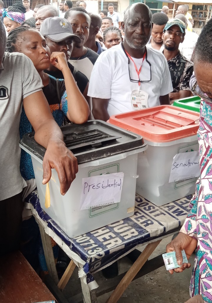 An Ibo businessman, Mr Ogu Christian, in his remarks shortly after casting his votes said: ” Today vote fine well well, them organize well. This is the best of all. I have been voting here since 1999 and this election is the best. I thank INEC for a good job.”