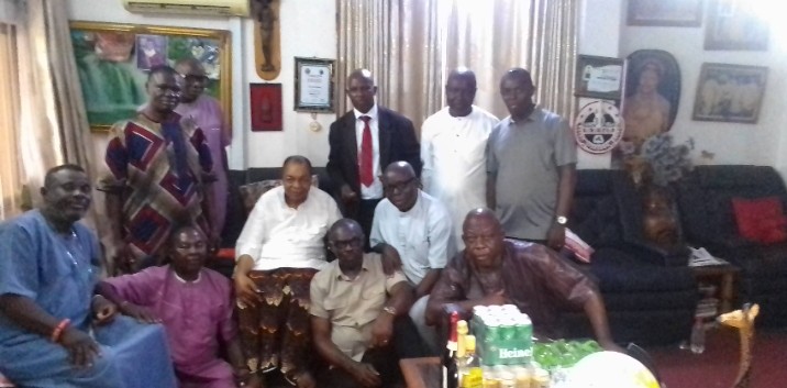 Chief David Siakpere ( middle ) and members of the delegation of St Kevin's College Old Students Association (SKCOSA ) during their visit to Chief Siakpere at his Fair View Estate residence in Enerhen Uvwie Local Government Area last weekend.