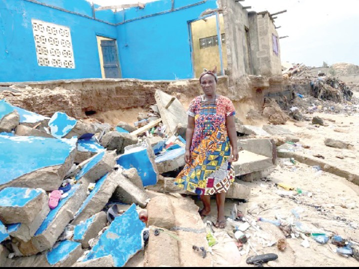 A victim of the marauding sea waves, Hannah Bentum, and her five children whose room has been destroyed is currently staying with family members at another side of the house that still stands dangerously and is vulnerable.