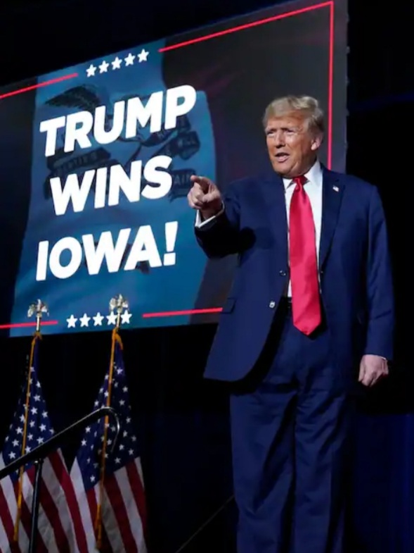 Donald Trump romped to a decisive victory Monday night in the frigid Iowa caucuses, cementing his formidable grip over the Republican Party and pushing the nation closer to a historic modern rematch with President Biden